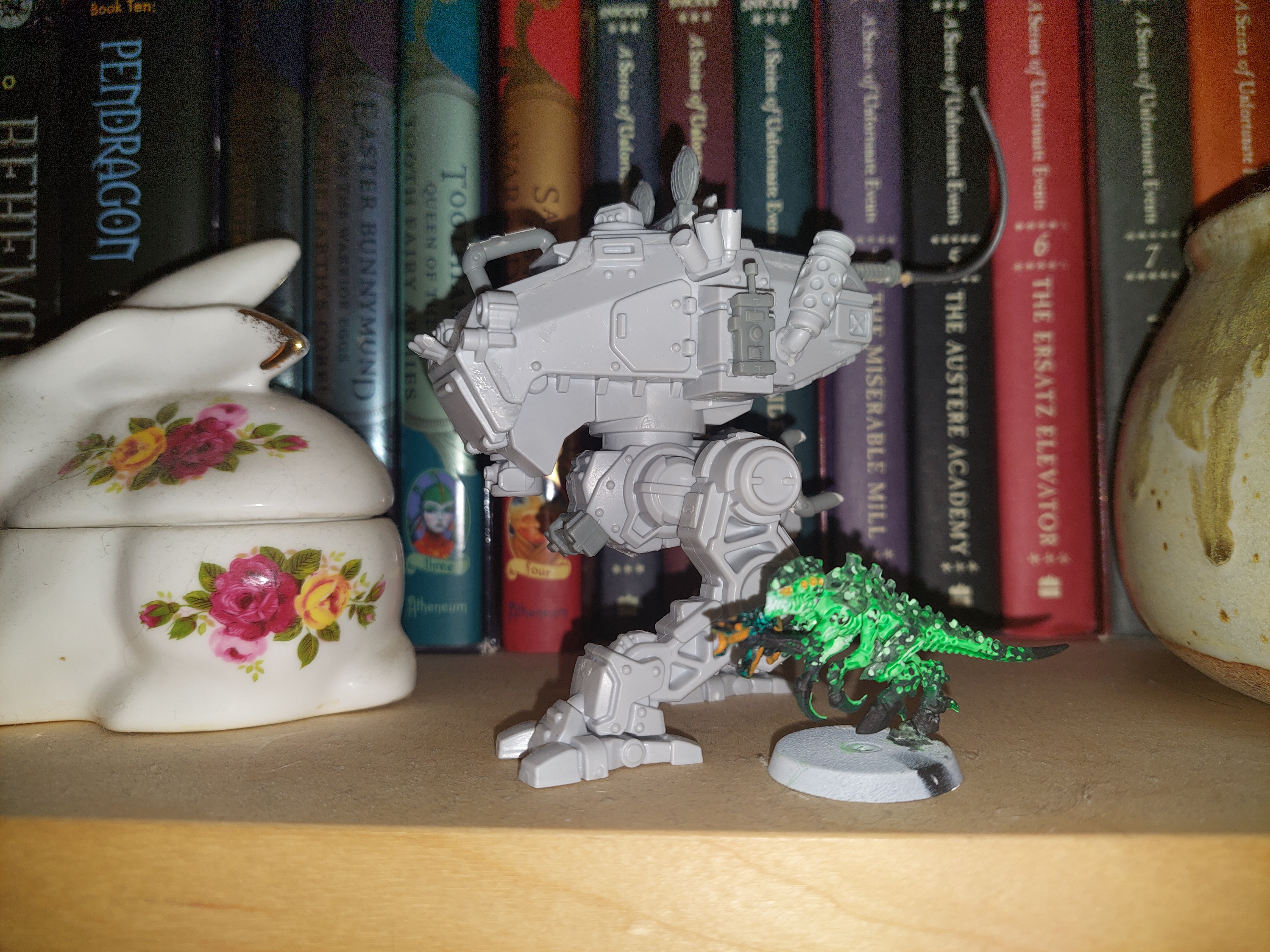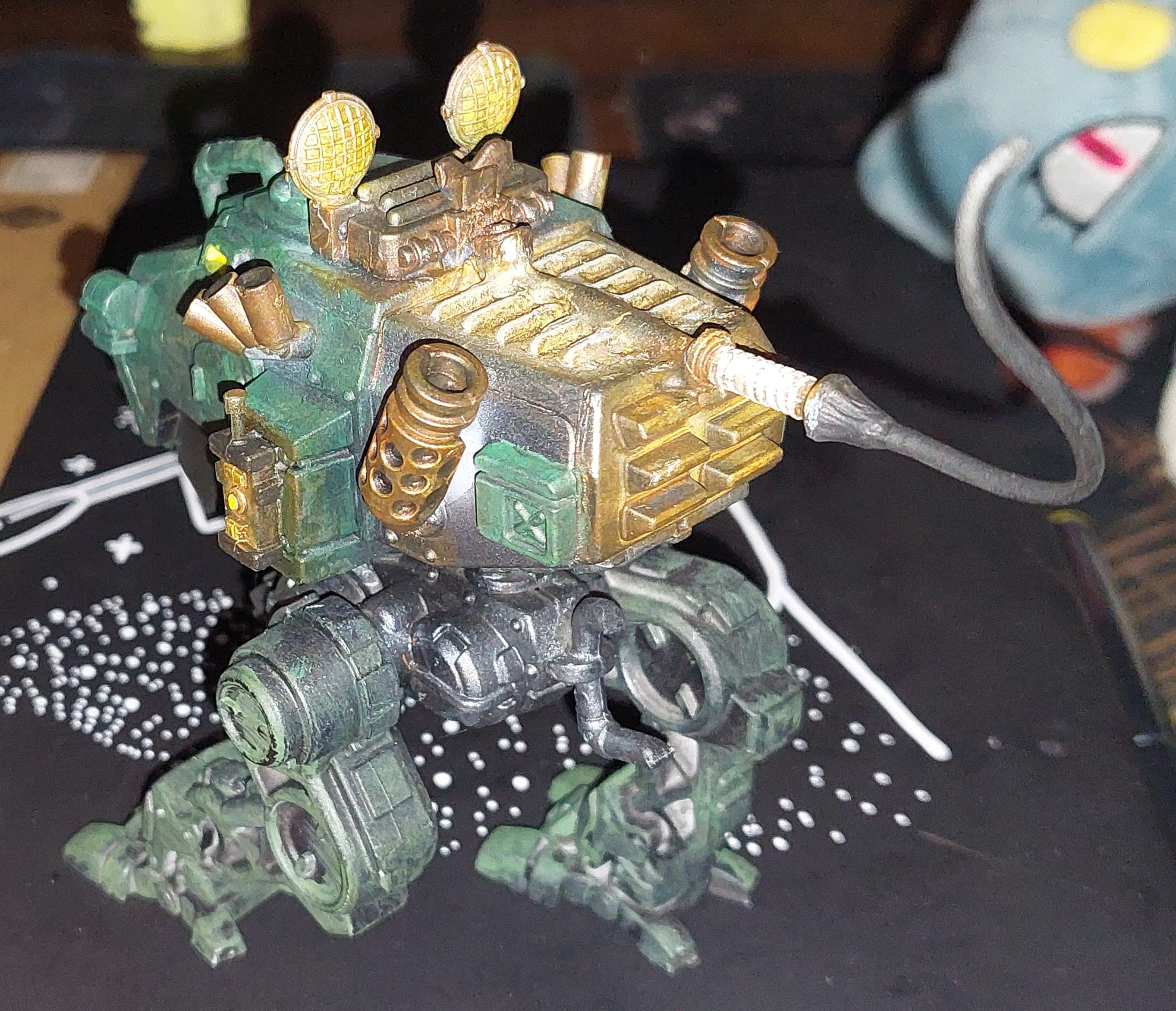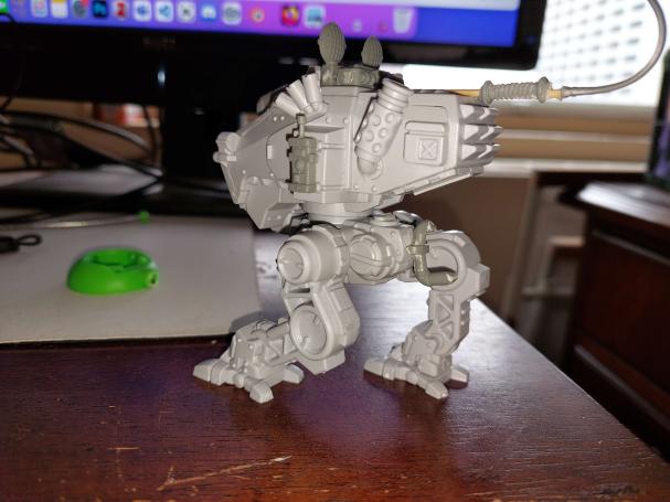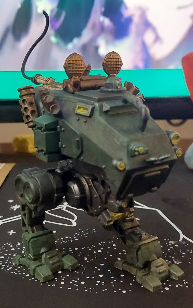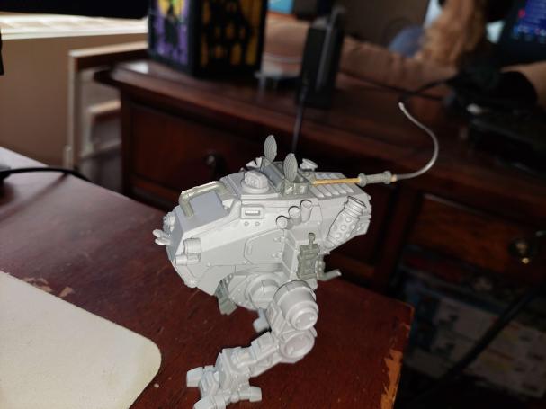 The first model I ever kitbashed. The Scout Mouse is a combination of Dollar Store “Navy Seal” action figure parts and a tabletop war game walking tank. Using these two kits the goal of the kitbash was to design a vehicle that would be able to move fast through brush and wooded areas for search, rescue, and scouting. The mouse in the name came about when the lighting system from the Navy Seal boat was placed on top of the walking tank giving the vehicle cute mouse ears playing into the fast, agile, low armor feel of the design.